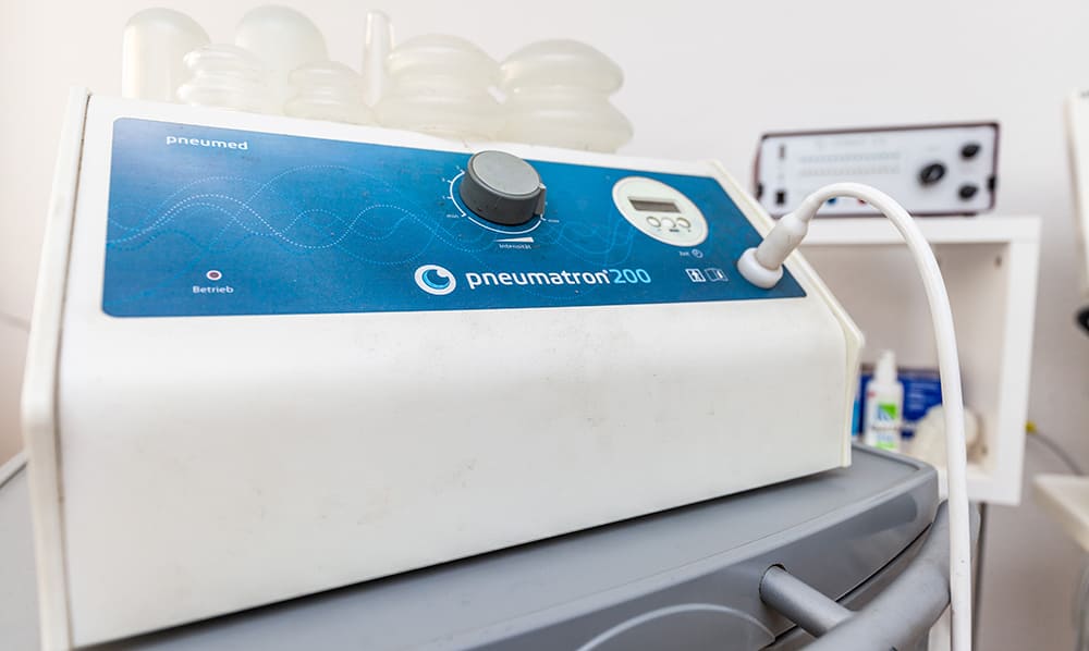 Die Ausstattung unserer Praxis, ermöglicht es uns, auch spezielle Massagetechniken wie zum Beispiel die pneumatische Pulsationstherapie anzubieten.